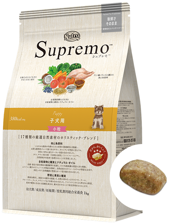 愛犬の体に必要なアミノ酸をバランスよく含むチキン・ビーフ・ラム・ダックなどの肉を第一主原料に使用し、おいしさをそのまま封じ込めました。